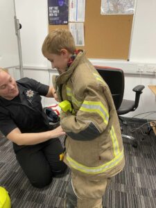 The Beavers recently visited the local fire station, where they learned how important the fire fighters jobs are. They tried on the heavy uniforms and loved the noise and lights on the fire engine. Most of all they enjoyed being shown how to use the water-hose.